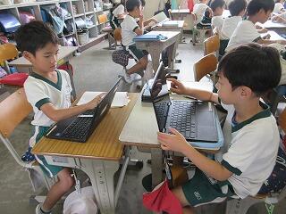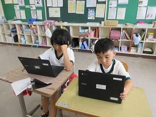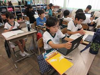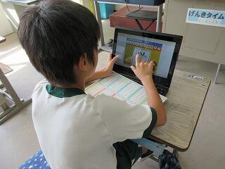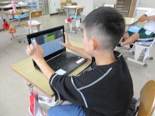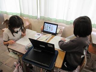 ★ICTもしっかりと使いこなしていました。今日は、くじらぐものお話の大体をつかむ学習でした。