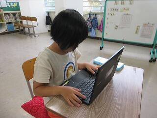 ★タブレットでの学習に集中して取り組んでいました。プログラミングにチャレンジしている子もいました。
