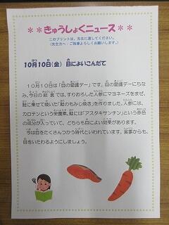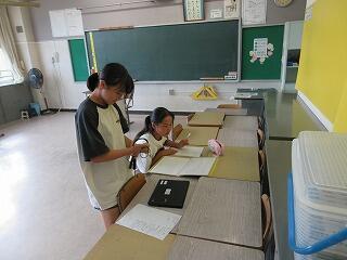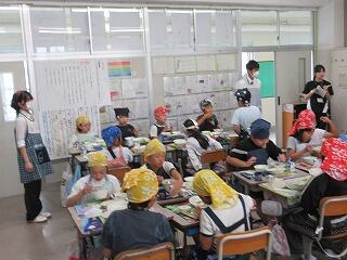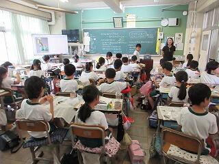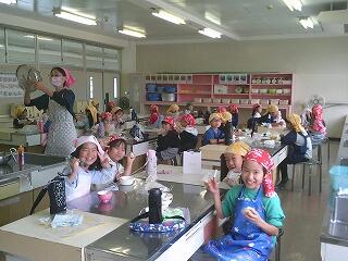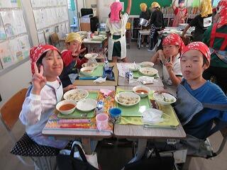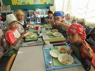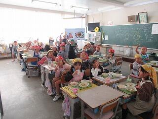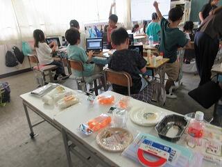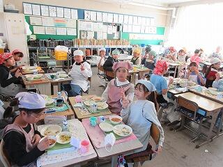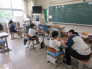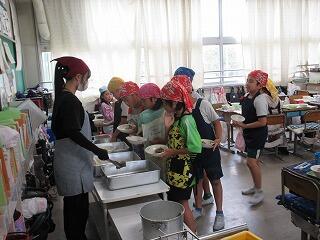 用があって少し遅れてしまったら準備が終了していました。準備が素早くできたことを実感しました。給食の時間は、準備、おかわりの仕方、栄養のよい食事、会食のマナー、食を通して人間関係づくり、片付け等、子どもに指導することがたくさんあります。実習生もいろいろなことを学ぶことができたことでしょう。