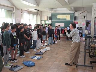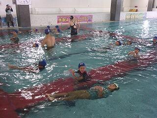 ・水の中に衣服を着たまま入ると、動きづらいこと、泳ぎが得意な人でも溺れてしまうことがあること等について、体験的に理解を深めていました。