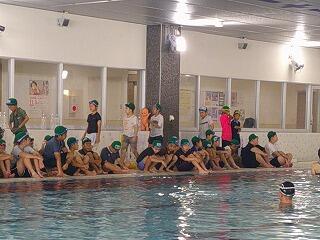 ★今日は、2・4・6年生の最後の水泳学習の日でした。6回の水泳学習でしたが、少人数グループで教えていただき、子どもたちはとても意欲的に取り組み泳力が伸びました。毎回の水泳学習をとても楽しみにしていました。今日は、最終回で着衣水泳を実施しました。