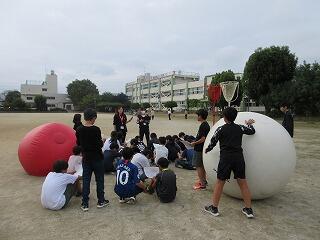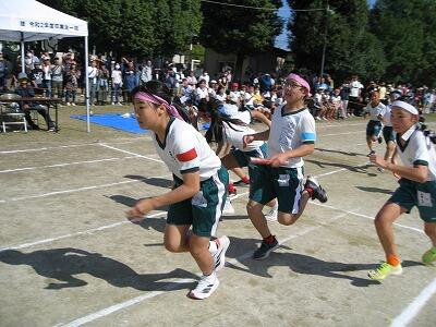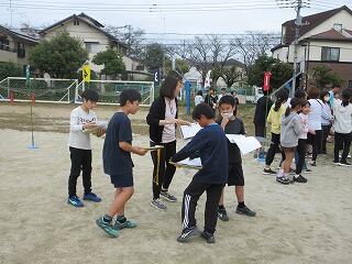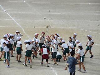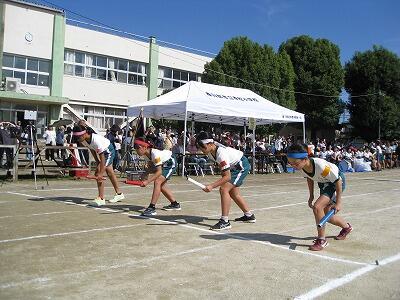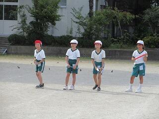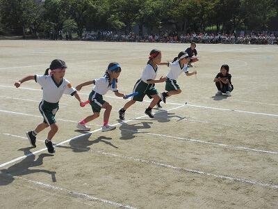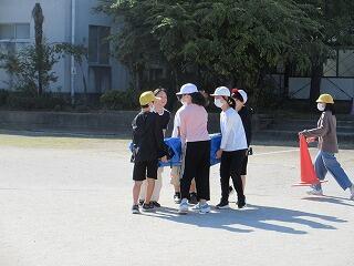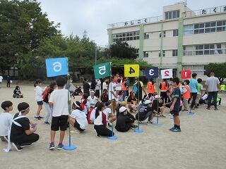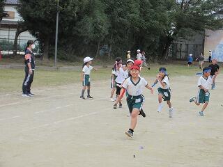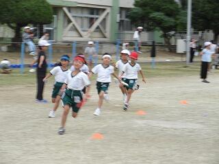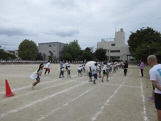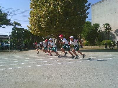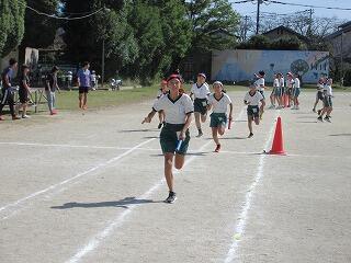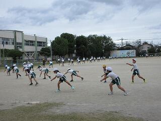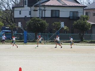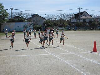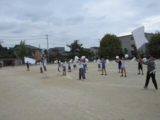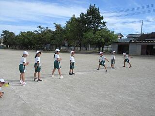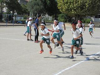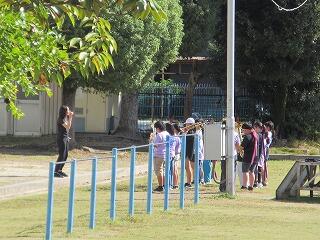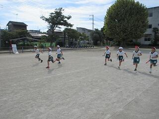 ★体育の時間、バトンパスの練習をしていました。回数を重ね少しずつ慣れてきました。