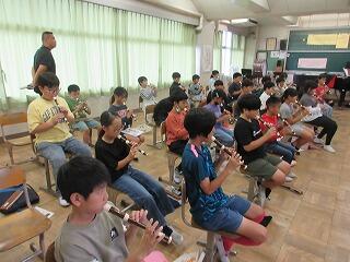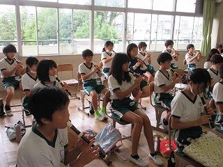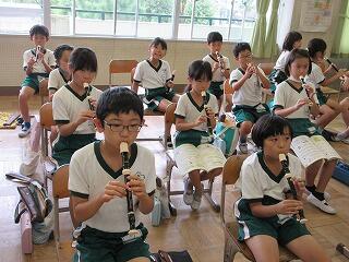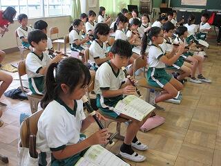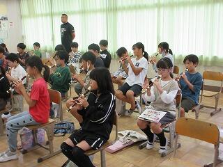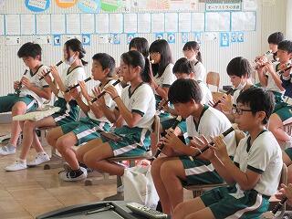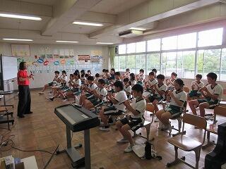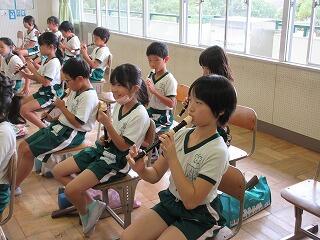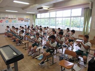 ★音楽の時間、「和音のひびきの移り変わりを味わいながら演奏しよう」をめあてに「雨のうた」のリコーダーの学習をしていました。集中して取り組みきれいな音色を奏でていました。