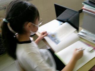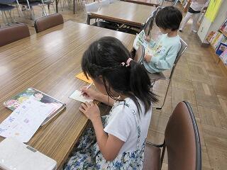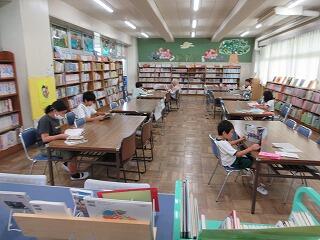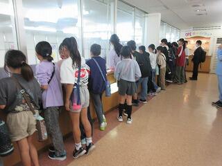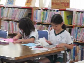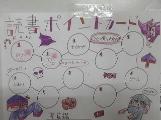 ★業間休みの図書室です。本を借りに来ている子がいました。読書貯金をためようとたくさん本を読んでいます。また、図書委員会が企画してくれた読書スタンプカードをために来ていました。スタンプためると、①3冊で、本来1冊し借りることができませんが、特別に2冊借りることができるようになります。②6冊でシールをゲットです。③10冊でしおりをゲットです。