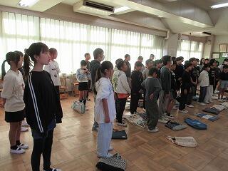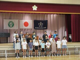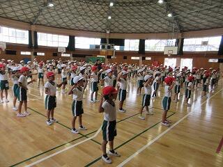 ★全校朝会がありました。元気いっぱいのあいさつが体育館に響き渡りスタートしました。