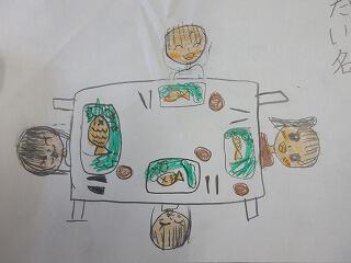 大凧揚げ、藤の花すまし汁、クレヨンしんちゃんが描かれたお米のムース等、特別メニューで子どもたちはとても嬉しそうでした。