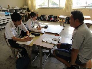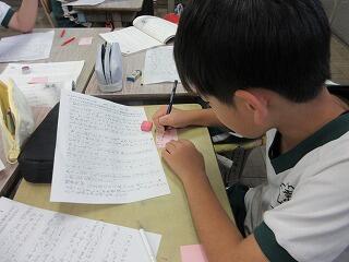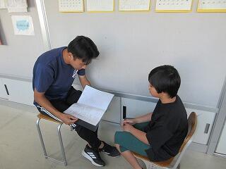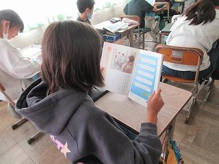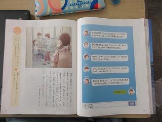 教科書にのっているSNSの会話について、とても意義深い話し合いをしていました。友達と互いに信頼し、高め合う人間関係を築いていく大切さを学んでいました。