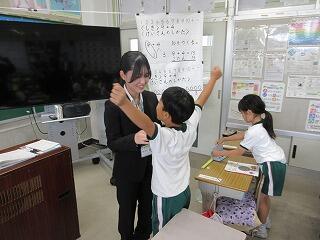先週から幸松小学校に実習にきている大学生の先生も、授業にチャレンジしています。