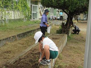 ★おおぞら農園を整備して、かぶの種をまいていました。これから一生懸命育てます。かぶができるのが楽しみです。花壇の整備もしてくれました。『上手にかぶを育てることができたらまたかぶがあがります!』