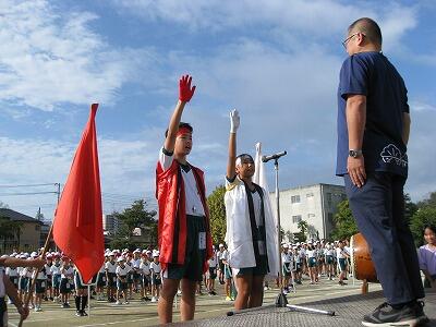 最後に、今年の幸松小学校の運動会を引っ張っていってくれるリーダーの応援団長の紹介と、団長の決意表明がありました。