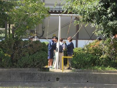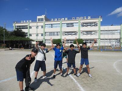 ★業間休みに応援団の団長・副団長・太鼓担当が、担当の先生と撮影をしていました。