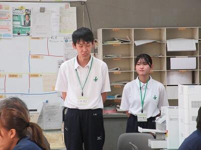 ★代表委員、実習生が雨にも負けずあいさつ運動をしてくれています。