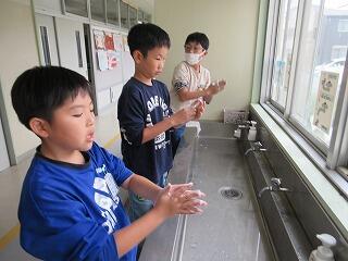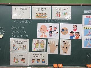 ★養護教諭からは、感染症の予防に向けて、手洗い・うがいを徹底するようにお話がありました。