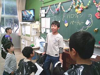 はじめに、ハロウィンって何をするイベントなのかを動画で学びました。