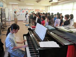 ★音楽の時間、2クラス合同で、校内音楽会で歌う歌の練習を行っていました。とても素敵な声が出てきています。