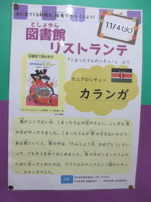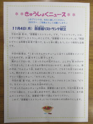 物語にでてくる料理を給食で食べて、もっと本に親しもうという特別な企画です。
