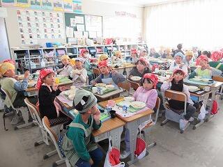 ★給食の時間に取材に行きました。今日は、給食主任による給食指導の示範です。