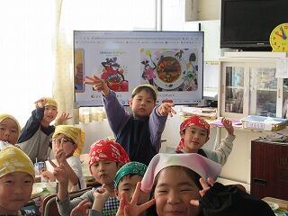 ★大型モニターでも先生が、本と料理を紹介してくれていました。いろいろなことがつながり食欲が増していたようです。