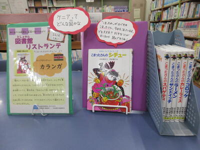★図書室へ行ってみると、図書館支援員さんや図書室サポーターさんが『こまったさんのシチュー』やこまったさんシリーズの本、ケニアを知ることができる本を用意してくださっています。感謝しかありません。
