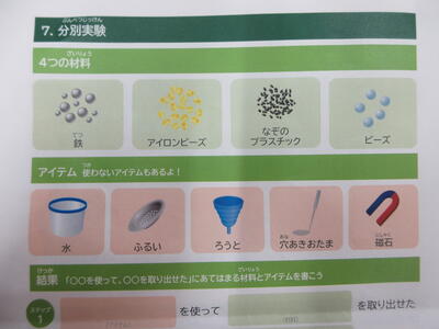 ★そして、最後は、キヤノンのリサイクルが、材料を分けるときは、ものの特徴を利用することを学んだ後、実際に分別実験を行いました。