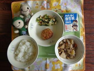 「大山おこわ」は、鳥取県の大山町周辺の郷土料理です。漢字で大きい山と書いて、「だいせん」と読みます。地元でとれたもち米や山菜などで作られます。給食の大山おこわには、鶏肉、えりんぎ、ぜんまい、油揚げが入っています。