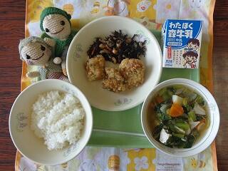 6年生が考えた料理です。青のり入りのから揚げは、磯の香が後からきておいしかったです。のりはみんな大好きですね。