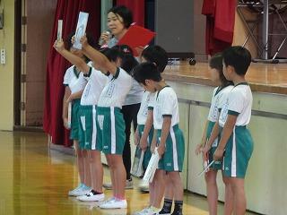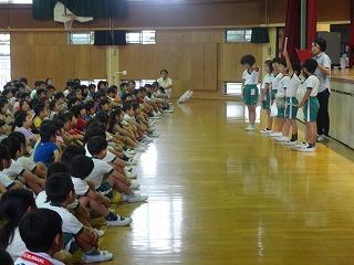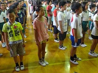 3年生の子どもたちと一緒に笹本先生から7月の生活目標についてのお話がありました。