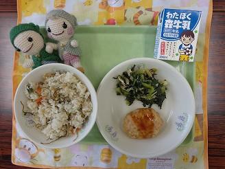 2学期の家庭科の授業で、バランスのよい献立について学習し、給食の献立を考えました。旬の食材を意識して取り入れた栄養たっぷりの献立です。春巻きの中にはさわら(魚)だけでなくチーズとねり梅を入れることで、魚の臭みを消してくれ食べやすくとてもおいしかったです。