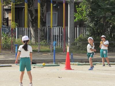 ◆校庭では、3年生がテニスラケットを持って、ベースボール型ゲームにチャレンジ!!