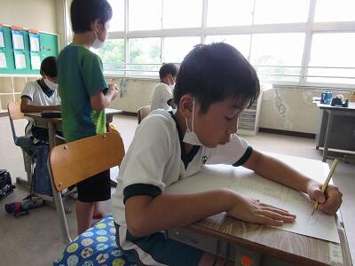 ◆3年生は、この集中力で図工の絵の表現に挑んでいるよ。
