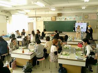 その後、参加者の皆様には、児童が配膳している様子などを見学してもらい、今日の献立を試食してもらいました。