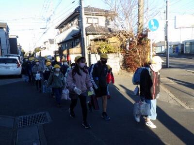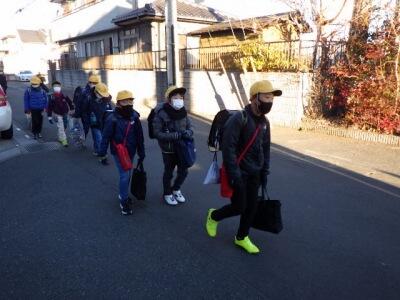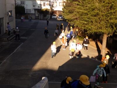 職員とともに、下校班ごとで下校していきます。また明日ね。