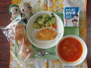 6年生が考えた料理です。チーズのびのびという感じではありませんでしたが、コロッケの中にチーズが入っていておいしい料理でした。