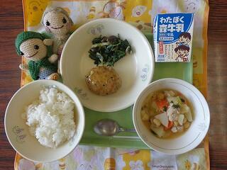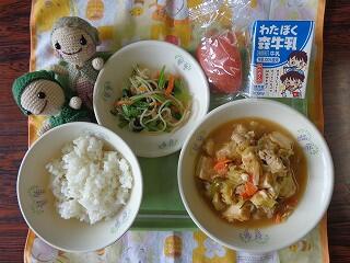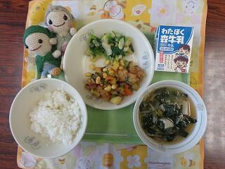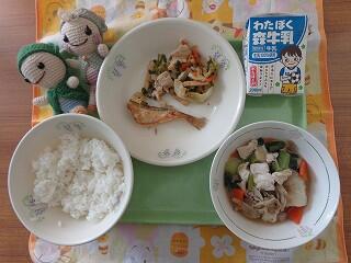 6年生が考えた献立です。おかずの味付けを工夫したり、旬の野菜をたくさん使用した献立です。栄養バランスもバッチリです。