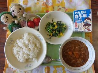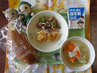 6年生が考えた料理です。みんなの大好きな唐揚げをカレー味にしました。変わり唐揚げもいいですね。