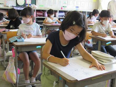◆5年生の書写は、はがきの書き方を学んでいるよ。