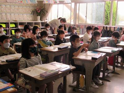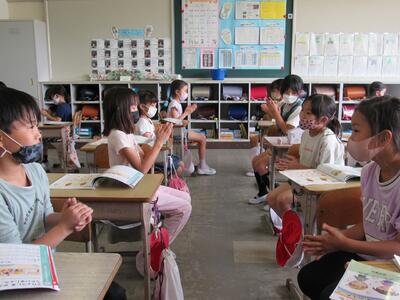 ◆2年生の教室から、手拍子でリズムを打つ音が聞こえてきたよ。