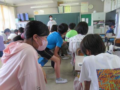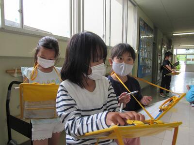 ◆4年生は、空気鉄砲を使って実験をしているよ。
