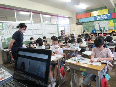 ◆今朝は、グーグルミートによる教室からの中継で全校朝会を行っています。