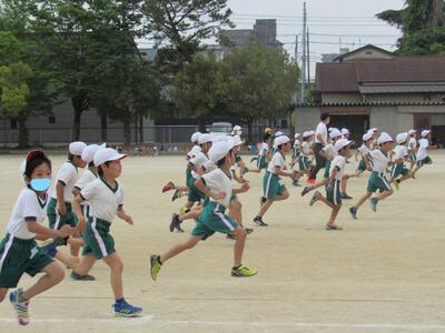 続いて、女子がスタートしたよ。1年間の体力の伸びを実感できるといいね。