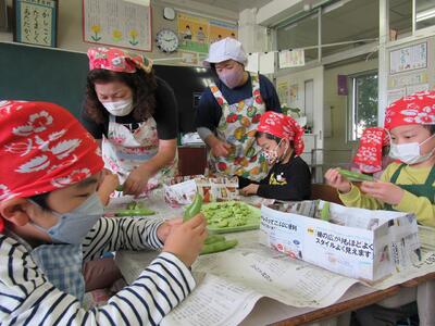「これを給食で食べるんだね。」 「私も、早く食べたいねあ。」