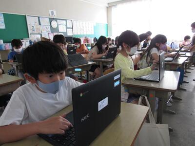◆3年生は、PCのローマ字打ちをゲームで学習しているよ。