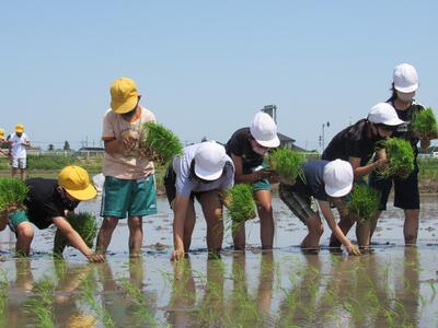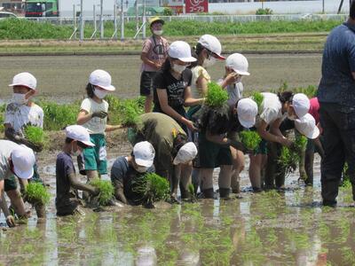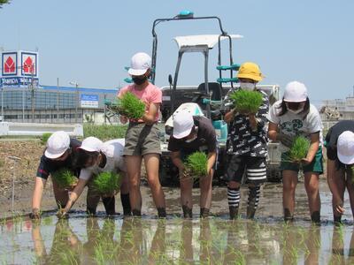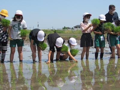 5月30日(月)爽やかな風が吹く中、5年生の田植え体験です!!