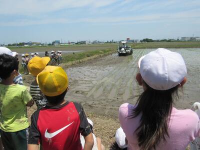 「田んぼの中を走りたい人は来てください。」 「はーい!!」