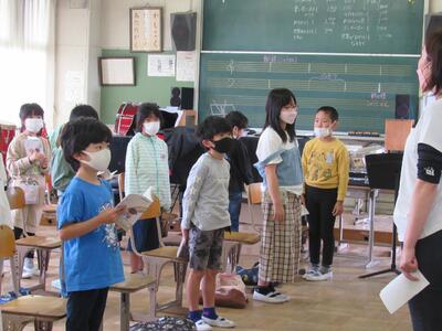 ◆3年生が歌う「にじ」の歌声に誘われて音楽室へ。