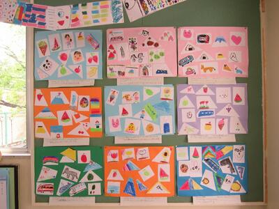◆2年生は、クレヨンをうまく使って「ぼかしあそび」で絵を描いているよ。