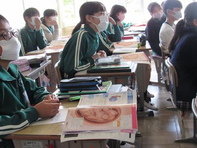 ◆となりの5年生は、理科で母親のお腹のなかにいる赤ちゃんについて学習中。