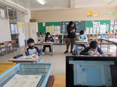◆「たんぽぽ学級」は、算数の課題にチャレンジしているよ。