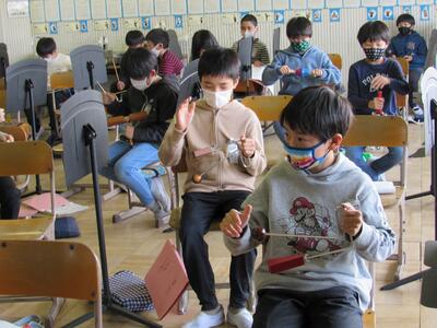 ◆4年生の音楽では、1年間の合奏のまとめをしているよ。