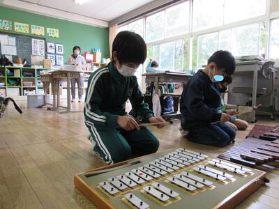 ◆2年生は、「小ぎつね」を場面の様子を思い出しながら演奏しているよ。